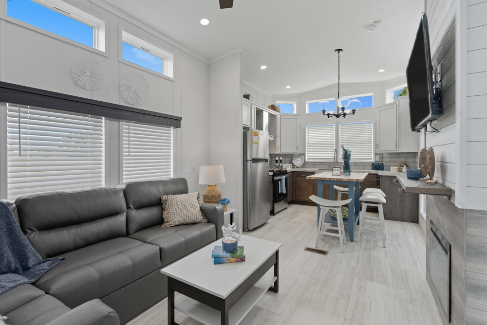 The Belona model has 1 Bed and 1 Bath. This 399 square foot Park Model Loft home is available for delivery in Indiana, Michigan, Ohio, Illinois, Wisconsin, Minnesota, Kentucky, Tennessee, North Carolina.